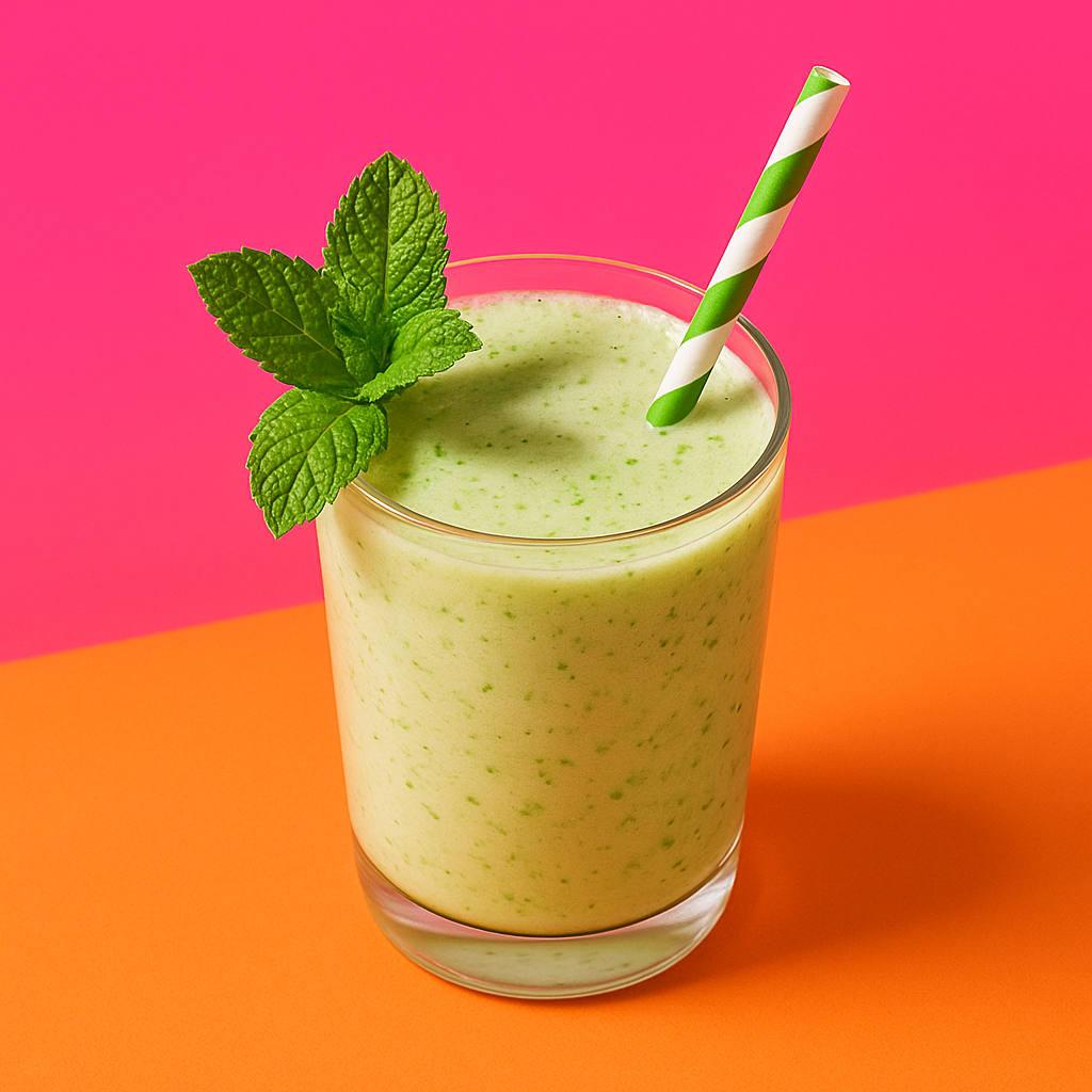 A refreshing, lightly sweetened smoothie inspired by the classic Mojito cocktail, featuring mint, lime, and a subtle hint of rum flavor, balanced with a smooth texture. Perfect for a revitalizing treat with moderate strength and fruitiness.