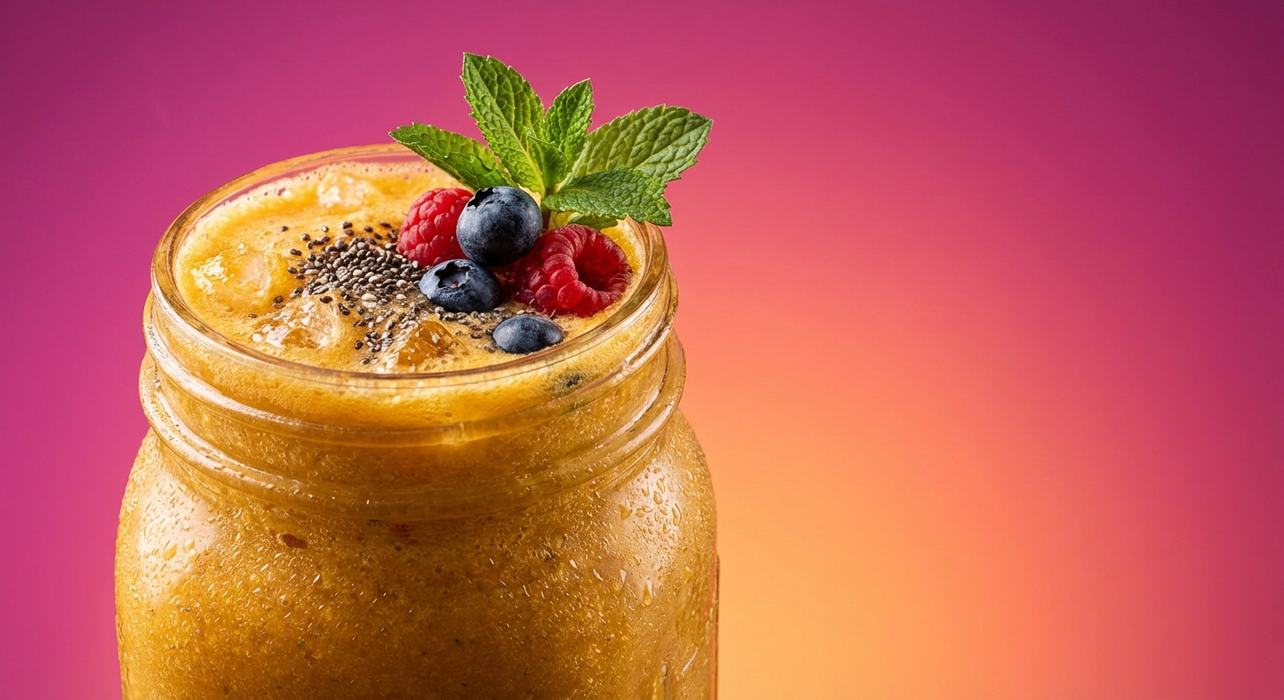 Pour the Golden Glow Resilience Smoothie into a tall glass or mason jar. Serve immediately to enjoy its refreshing chill and vibrant flavors.